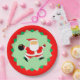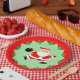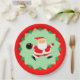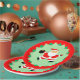 Creative bowling Christmas holiday party plates featuring funny Santa bowling.