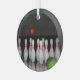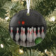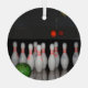 An ornament featuring a photo of bowling pins and a green bowling ball.