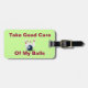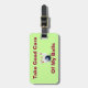 You can personalise the name and address on the back of this bowling luggage tag. The colours are green yellow red and the design features a silhouette of a bowling ball and pins . Perfect for those who love bowling. Attach it to your luggage bag when you travel.