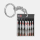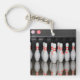 A double sided key chain featuring images of bowling pins and the slogan "It is not how you bowl it is how you roll."