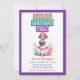 A cute anime girl's bowling themed Birthday Party Invitation. In purple, pink and turquoise.