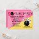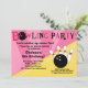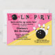 Super cute bowling party invitation features customisable text and a pink and yellow colour scheme. Perfect for any bowling birthday party!
