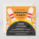 Birthday party invitation featuring a bowling ball knocking down bowling pins. Customisable invite text. For custom requests or help with customising please use the store contact link above.