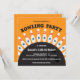 Birthday party invitation featuring a bowling ball and a row of bowling pins. Customisable invite text. For custom requests or help with customising please use the store contact link above.