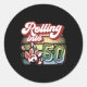 Bowling Party Rolling Into 50 Bowling Birthday Classic Round Sticker