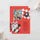 Make your child's next bowling party a strike! The bright red background has a chequerboard pattern in black and white and features a bowling ball and pins. Just add your favourite photo to make it yours. The card is easy to customise with your wording, font, font colour and choice of six paper types.