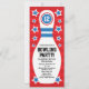 Fun and colourful bowling party invitation for children featuring a white bowling pin with customisable birthday age and invite text surrounded by white and blue stars on a red background. For custom requests please use the store contact link above.