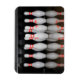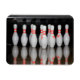 A magnet featuring a photo of bowling pins.