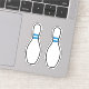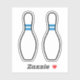 Stickers featuring two white bowling pins with blue stripes and black outlines.