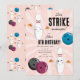 A cute "Let's Strike Up Some Fun" bowling and pizza birthday party theme. A custom kids bowling birthday invitation design perfect for a bowling and pizza birthday party theme. Customise this "Let's Strike Up Some Fun" birthday invitation with your own text and make it your own! Ideal for kids birthday's!