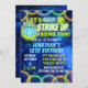 Bowling Strike Up Fun Neon Glow Blue Boys Birthday Invitation