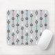 Mousepad with Bowling Stripes print on grey background. Stripes with scored boxes, bowling pins, and star patterned bowling balls.