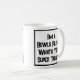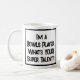 Funny slogan on a mug that says "I'm a Bowls Player. What's YOUR super talent?". Mug for a Bowls Player. Black and white bold text.