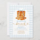 Bows and Brunch Pancake Blue 1st Birthday Gingham Invitation