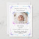The announcement design features a delicate frame of soft rainbow watercolor bows, elegantly framing the photo of your sweet baby. Gentle strokes and hues create a timeless and whimsical touch, perfect for celebrating this beautiful moment.