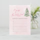 The Pink Bows Christmas Tree Guess the Baby Food Baby Shower Game is a fun and festive activity for your holiday-themed celebration! Featuring a charming design with pink bows, Christmas trees, and a snowy pink background, this game challenges guests to identify baby food flavours by smell or taste. Perfect for a baby girl’s winter shower, this playful and interactive game adds laughter, excitement, and holiday cheer, creating unforgettable moments for all. 🎀🎄✨