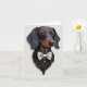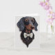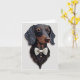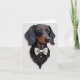 This particular greeting card features a digital image of a black and tan dachshund, wearing a bowtie that has been created using digital art, in the style of paper quilling art. The image portrays the adorable and charming nature of the dachshund breed, and the intricate quilling technique adds a touch of sophistication and elegance to the card. The card can be used for various occasions, such as birthdays, anniversaries, or simply to send a warm message to a loved one who is a dachshund enthusiast.