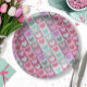 Boxed Hearts Pattern Aqua/Pink ID629 Paper Plate