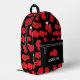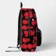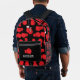 Sporty black backpack patterned with red boxing gloves. The front pocket area has customisable text for you to add your name or initials