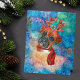 Boxer Breed Dog Christmas features a watercolor of a Boxer with reindeer antlers, a red Christmas scarf, and a galaxy watercolor.