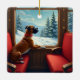 Boxer Christmas Eve Train Ride Painting Ceramic Ornament