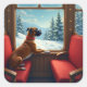 Boxer Christmas Eve Train Ride Painting Square Sticker
