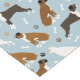 Cute Boxer dogs sits and stands with brindle, white and fawn coats with scattered dog bones and pawprints pattern.