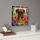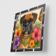 This vibrant wall clock showcases a charming Boxer dog surrounded by a colourful array of tropical flowers and delicate butterflies. Its unique and artistic design brings a touch of nature and cheer to any room, making it a perfect decorative piece for dog and flower lovers alike.