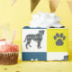 Boxer dog and paw silhouette yellow, blue and black grid lines repeat abstract pattern. The Boxer is a medium to large, short-haired breed of dog, with a smooth and tight-fitting; colors are fawn, brindled, or white, with or without white markings