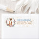 The left side of these return address labels feature an image of a spring flower wreath in colours of soft pink, blue, gold, green and cream. At the centre is a watercolor portrait of a brown and white Boxer dog. Tiny gold confetti gives a subtle sparkle to the background. Your custom text is in blue and brown gold at the right.
