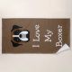 Use this fun beach towel to let everyone know you love your Boxer dog pet. Designed with an image of a Boxer face and large typographic lettering you can alter with your own message or name of your dog.