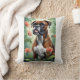 Boxer Dog with Flowers Decorative Pillow