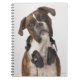 boxer dog with headphones notebook