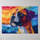 This is an abstract colourful dog portrait of a Boxer breed dog in paper quilling art style. It is a lovely poster for dog lovers and Boxer owners.