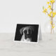 This cute canine note card features a black and white image of a young Boxer puppy dog highlighted against a black background.