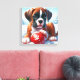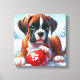 Boxer Puppy Playing in Snow with a Red Toy Ball Canvas Print