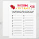 Boxing A To Z Race Game is a party game. Write a boxing related word that begins with each letter of the alphabet. First Person Finish Wins!