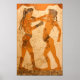 Poster of ancient Greek fresco depicting two young boxers, uncovered in Akrotiri in the island of Thira (Santorini) dating from the Minoan Bronze Age circa 1500 BC. Photo taken on 23 February 2012 in Athens, Greece.
