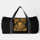 This black duffle bag features a powerful yellow and white graphic related to boxing. The phrases "BOXING", "HARD WORK", and "DEDICATION" are prominently displayed around a detailed boxing glove design. Lightning bolts add an energetic touch, making this bag perfect for athletes or boxing enthusiasts. It's ideal for carrying gym essentials or sports gear. Edit colour of the bag caps and body in the Design tool to your favored colours.
