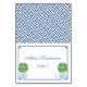 This design is sold as a 3.5x5 inches flat card that you will need to fold (or score and fold) in half yourself to make individual place cards with a folded size of 3.5x2.5 inches. This classic design features a Boxwood topiary ball in a blue and white Ginger Jar planter. The design also has a Greek Key border on the front and a Greek Key pattern on the back. You can change the contrast colour (currently a dark blue) by entering the design tool ("click to customise further" underneath the text customisation boxes) and changing the background colours. Shown here as place cards for a wedding but would work equally well as food tent cards, for a smart event at say a golf course or country house.