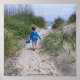 Boy walking to beach, pail in hand poster. Digitally "embossed" for a picture that pops!