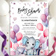 Boy Baby Elephant Blue Balloons Cute Baby Shower Invitation Card. Celebrate the upcoming arrival of your precious baby with this festive, chic and beautiful Invitation card featuring colourful watercolor balloons, festive gold glittering stars and hearts, pretty gift sets wrapped with ribbons and floral decorated mails . All the texts are pre-arranged for you to personalise easily and quickly with your baby shower details.