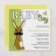 Boy Baby Shower Cute Bunny with Moustache - Green Invitation
