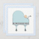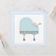 Music themed baby shower invites, featuring sweet boy in blue baby grand piano shaped as a stroller.