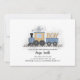 Send these vintage train invitations to friends and family to invite them to your Boy Baby Shower. This modern take on a vintage design is perfect for both boy baby showers. These cute choo choo train invitations feature a train illustration chugging along on a cute track to motherhood, the trains car is carrying the word Boy. Also included in the design is a watercolor smoke illustration puffing out the words 'it's a', while coal sprinkles the background. Personalise your invitation with your event details in beautiful decorative typography. Colours include beige, blue, white, and black.