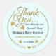 Elegant spread the love not germs baby shower stickers for personalised hand sanitizer favours .Classy baby shower thank you favour stickers with gold thank you typography and golden hearts. Personalise with mum to be name and baby shower date.