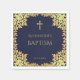 Boy Baptism Navy Blue Faux Gold Leaves Elegant Napkin