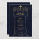 Boy Baptism Navy Blue Vintage Calligraphy Cross Invitation