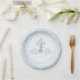Boy baptism paper plates with pretty blue pearl swirl cross on a blue damask background. These elegant blue baptism paper plates are easily customised by simply adding text. You can also move the cross as needed on these blue baptism, christening and first communion paper plates.