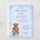 Cute brown bear with blue bow sitting on a shipping box and boy Baby Shower by Mail invitation. The text on the brown kraft paper box can be personalised with "It's a Boy!" You can ask the guests to ship their gifts directly to the mum-to-be, or ask the guests to ship their gifts to a "host" who lives near the guest of honour, or you can have an unwrapped baby shower, record the event and ship everything to her afterwards. Maybe you can think of another variation. Would love to hear your idea and/or see pictures. info@lemontreecards,com <<designer